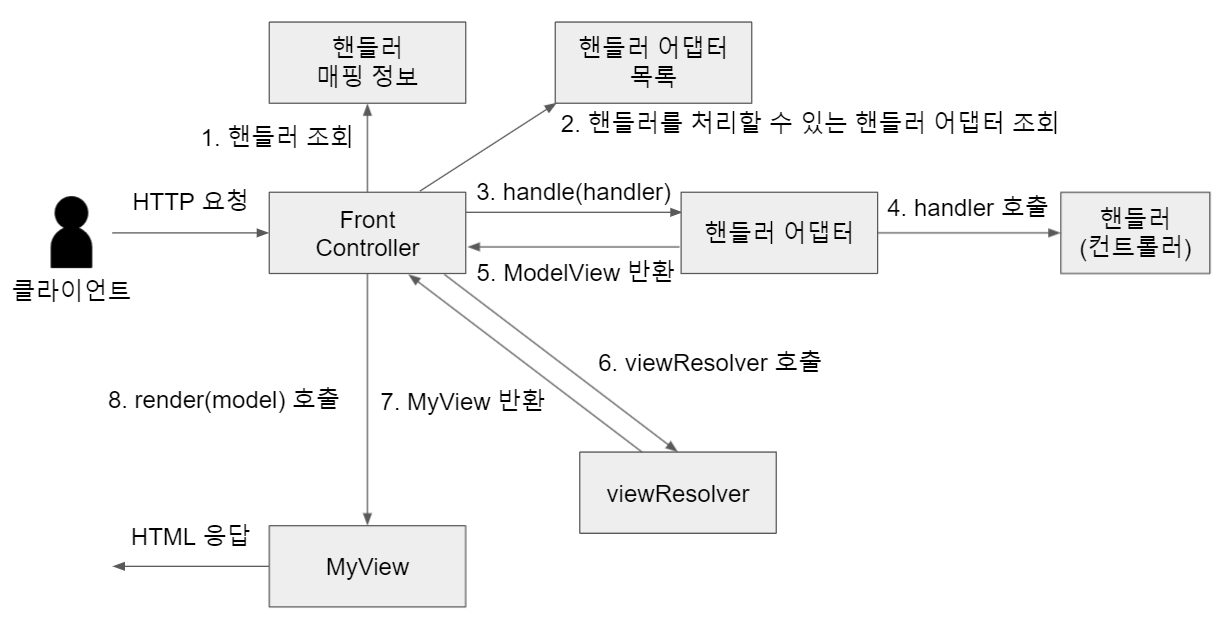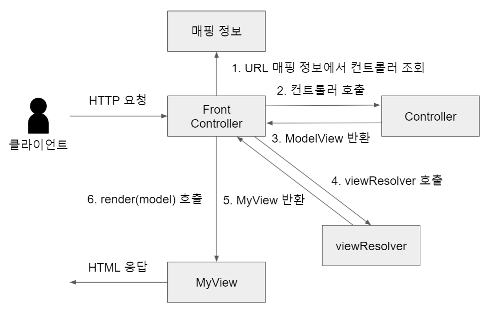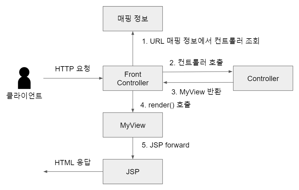Front Controller는 MyView를 리턴받아 render를 수행해준다