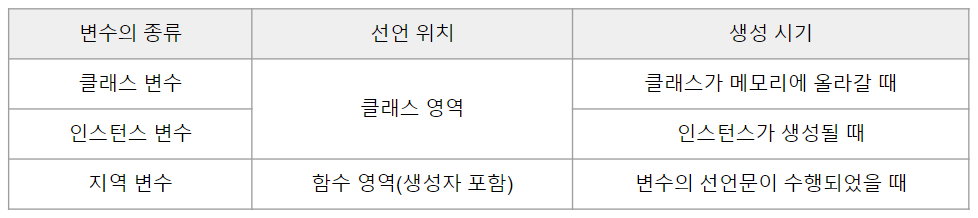 static을 붙여서 나타낸다. / 모든 인스턴스의 클래스 변수가 공통된 저장공간(변수)를 공유한다.